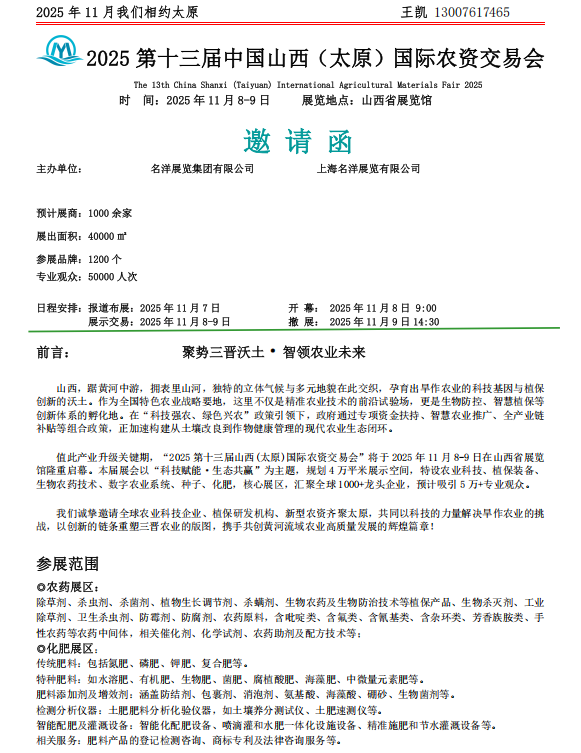 来源:2025第十三届中国山西(太原)国际农资交易会